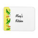 Ein benutzerdefinierter Küchenmagnet mit einem Rand von grünen Bohnen und Bratpfannen auf Retro-Gelb Gingham kariert geprüft Muster mit einer Touch von goldgelber Orange und einem winzigen Faden von Salbei grün. Klicken Sie auf Anpassen, um Ihren Namen oder Ihre Nachricht hinzuzufügen.