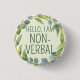Mit diesem niedlichen Autismus-Abzeichen von JessicaAmber geben Sie Ihre besonderen Wünsche bekannt! Der Slogan "Hello, I Am Non-Verbal" in einem schmalen Schriftart, umgeben von einem grünen Kranz von Blätter, auf einem hellgrünen Hintergrund. Sie können den Text nach Bedarf bearbeiten. Ein großartiges Geschenk für ein autistisches Familienmitglied. ⭐ Für weitere nützliche Accessoires für Beeinträchtigungen besuchen Sie bitte mein Geschäft Zazzle.com/Elder_Vitality ⭐ Für benutzerdefinierte Bestellungen, schreiben Sie mir auf Zazzle