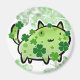 Eine niedliche, fette, grüne Cartoon-Katze, die mit Kleeblättern bedeckt ist. Ideal für St. Patrick's Day oder für alle, die irische Themen Lieben.
