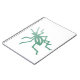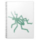 Green Poetica Cricket Grafik auf einem weißen Hintergrund auf einem ausgekleideten Journal oder Notebook.