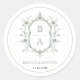 Grüne, elegante Blumen-Wappen-Monogramm-Grenzhochz Runder Aufkleber