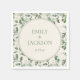 Elegante Salbei grüne Eukalyptus-Blätter auf cremefarbenen Hochzeitspapierservietten. Enthält die Namen der Braut und des Bräutigams sowie das Hochzeitstag. Text ist anpassbar. Kontaktieren Sie uns für Hilfe bei der Anpassung oder für die Anfrage der Koordination von Produkten.