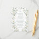 Tauchen Sie ein in zeitgenössische Eleganz mit dieser Karte für eine romantische Hochzeit mit botanischer Natur. Die Blätter sind mit Grünpflanzen und Eukalyptus geschmückt und verwoben mit einem Blumenkranz aus weißer Rose. Diese individuell anpassbare Karte ermöglicht es Ihnen, Ihre Hochzeitserfahrung zu personalisieren, indem Sie eine moderne Touch mit einem optionalen Monogramm auf der Rückseite hinzufügen und damit die Rustikalität Ihrer rustikalen Sommer- oder Herbstfeier erhöhen.