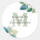 Grüne Eukalyptus mit Monogramm Hochzeit Runder Aufkleber