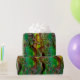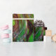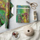 Whimsikale, farbenfrohe Aquarellmalerei mit goldener und silberner Folie in gelben, grünen, roten Farben.