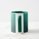 Das ist eine Tasse mit einem grünen Fisch, der darauf gezeichnet wird.
