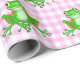 Grüne Frösche auf Pink Gingham Geschenkpapier