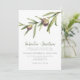 Dieses moderne und klassische Design besticht durch einen Aquarellarm mit grünen Blätter und Oliven. Set den Ton für Ihre mediterran inspiriert Hochzeit, sei es lokal oder Ziel.