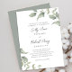 Freuen Sie sich auf elegante Einladungen zu einer Hochzeit mit klassisch-minimalistischen Blumenmotiven und einem blühenden Grün. Diese Einladung ist mit Aquarellfarben-Rose-Blume und Salbei-Grün-Blätter geschmückt, die einen botanischen Naturgarten-Charme ausstrahlen. Die schicke Kalligraphie-Schrift und das stilvolle Typografie-Design schaffen eine perfekte Balance aus rustikaler und minimalistischer Eleganz. Dieses Design ist komplett mit einer formalen Textvorlage ausgestattet und eignet sich ideal für Paare, die zeitlose Eleganz mit natürlicher Touch suchen.