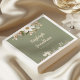 Mit dieser einfachen und modernen Hochzeitsserviette, die mit eleganten, weißen, schlauen und beigen Aquarellbildern auf sanftem, grünen Hintergrund besticht, verleihen Sie Ihrem Fest eine raffinierte Touch. Diese mit Erdtönen und minimalistischer Ästhetik gestaltete Blumenserviette bringt natürliche Schönheit und Eleganz in Ihre Tischumgebung. Ideal für Empfänge, Duschen oder Proben, ist es mit den Namen des Paares, dem Hochzeitstag oder einer besonderen Nachricht personalisierbar. Eine zeitlose Wahl für diejenigen, die schlichte Eleganz und modernes Design Liebe geben