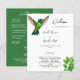 Ein frisches und natürliches Hochzeitslayout mit einem lebendigen grünen Kolibri im Flug und einer üppig grünen Grenze. Dieses erdige Design ist ideal für Gartenhochzeiten, Frühjahrsfeiern oder naturlich inspirierte Feiern.