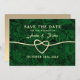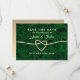 Einfaches, elegantes, goldgeflochtenes Seilherz in Kombination mit boho abstraktem smaragdgrünen Hintergrund. Eine schöne, minimalistische, moderne Kalligraphie-Hochzeit rettet die Einladung.