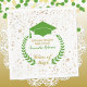 Papier Party Servietten für das spezielle High School oder Uni-Abschluss Party mit personalisiertem Text. Verfügt über ein Bild von einem grünen Gradmütze und Lorbeerkranz mit Akzent mit Imitaten goldenen Konfetti. Die passende Papierplatte, auch schwarz, blau und andere Farbgruppen, sind ebenfalls in diesem Design erhältlich