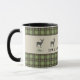 Genießen Sie Ihren morgendlichen Kaffee in Ihrer rustikalen Zuhause oder Ferienkabine mit dieser grünen und grauen karierten Tasse. Grün und Grau, mit hellblauen Akzenten und einer Silhouette Hirsch. Bearbeiten Sie den Text nach Wunsch und suchen Sie nach anderen koordinierenden Elementen in dieser Entwurfssammlung bei Camp_and_Hütte auf Zazzle.com.