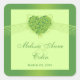 Dieser trendige personalisierte St. Patrick's Day Wedding abgerundete quadratische Aufkleber hat eine smaragdgrüne Grenze mit einer weichen grünen Mitte. Oben befindet sich ein grünes Herz, das aus vielen 4 Blatt Kleeblatten besteht, die an den Kanten mit Wirbel versehen sind. Das moderne Design des Streifens kommt vom Herzen bis zu den Seitenkanten. Am unteren Rand können Sie leicht die Namen der Braut und Bräutigam mit dem Datum der Hochzeitsfeier anpassen. Dies ist eine schöne Einladung für eine Hochzeit rund um den Patty's Day, für eine Frühjahr-oder Sommerhochzeit.