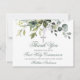 Die elegante First Holy Communion Dankeschön Card mit Silver Cross beinhaltet Aquarellfarben Eukalyptus-Blätter und andere wunderschöne botanische Grünpflanzen. Sage grünen Text.