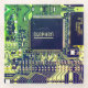 Detaillierte Fotografie einer Leiterplatte, perfekt für elektronische Enthusiasten. Hauptfarbe der gedruckten Schaltung: grün... Osterei : Suchen Sie nach der niedlichen kleinen Herzform im Kreislauf.