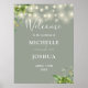Dieses elegante eukalyptusgrüne botanische Saitenleuchten mit einem grünen Begrüßungsschild kann mit Ihren Informationen in der schicken Typografie personalisiert werden. Entwickelt von Thisisnotme©