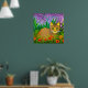 Grüne Mit Augen Katze im Blumengarten Poster
