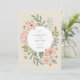 Moderne Kartengestaltung mit Blumenkranz und Blattgrün. Personalisieren Sie Ihre Namen, Ihr Hochzeitstag und Ihre Position mit den angegebenen Feldern.