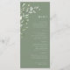 Boho Sage Greenery Olive Botanical Elegant Simple Wedding Menu Template. Bohemisch gestaltete botanisch minimalistische Menüvorlage mit eleganten und schlichten boho grünen Botanicals in handgedruckter Aquarell. Die schöne grüne Hintergrundfarbe eignet sich perfekt für Hochzeiten und Hochzeiten im Grünen. Editierbare Menüvorlage für Frühjahr, Sommer, Herbst (Herbst) und Winterhochzeiten.