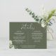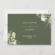 Eine elegante olivgrüne Blumenzettel-Hochzeitskarte personalisiert mit Ihrem besonderen Details Set in stilvoller Typografie und Ihren Namen und Hochzeitsdatum auf der Rückseite. Entwickelt von Thisisnotme©