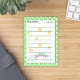 Sie suchen eine niedliche und kreative Art, Ihre Notizen fröhlicher und unterhaltsamer zu machen? Wenn ja, müssen Sie das neue Post-it mit einem weißen Rahmen, der eine geschmolzene Kante hat, ausblenden und den Schatteneffekt abwerfen. Im Rahmen sorgen niedliche grüne Sterne und Wolken mit Regenbögen für ein Gefühl von Leichtigkeit und Ruhe. Und es gibt noch mehr! Die Zeilen zum Schreiben Ihrer Notizen sind grün, sowie der Platz, um das Datum und Ihren Namen, die angepasst werden können. Mit einem grünen Hintergrund mit weißen Polka-Punkten eignet sich die Post-it perfekt für Erinnerungen, Aufgabenlisten, Telefonnummern oder sogar eine romantische Nachricht für den besonderen Menschen. Warum also behalt mit langweiligen und schlichten Noten, wenn man so eine schöne und charmante Post-it haben kann? Wählen Sie jetzt Ihre und machen Sie Ihre Notizen farbiger und lustiger!