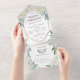 Diese "Geometric Sage Green Greenery & White Roses Rustic All in One Invitation" ist mit einer durchsichtigen, perforierten UAWG-Postkarte konzipiert. Falten Sie einfach jede Karte in die umrissene Form und dann Siegel und Senden - für den Versand ist kein Umschlag erforderlich. Genießen Sie die Kombination aus rustikalem Charme und elegantem Stil. Freuen Sie sich auf die üppige Vegetation, die zarten, weißen Elfenbein-Rose und die luxuriöse Touch des Goldes. Diese Einladung ist ein Meisterwerk, das die Bühne für Ihren besonderen Tag Set!