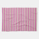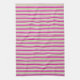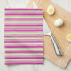 Handtuch mit Streifen in Rosa und grün auf Weiß. Designer Zuhause Akzent für Zuhause oder Hütte Küche oder Bad. Der weiße Hintergrund kann auf eine beliebige Farbe umgeschaltet werden, um der Zuhause-Dekoration zu entsprechen.