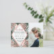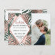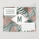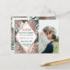 Rosa, Grün, Weiß und Imitate druckten Rose goldene Sommer-, tropische und elegante Palmen Blätter auf einem Plantagengrund mit geometrischen Imitaten gedruckt Rose Gold Diamanten Ausschnitte, Rett-the-Date Hochzeit Postkarten. Dieses klassische und raffinierte Design ist perfekt für das trendige und stilvolle Ehepaar. Personalisieren Sie Ihre eigene Nachricht auf der Vorderseite sowie ein individuelles Monogramm auf der Rückseite. Das gesamte Foto-Druckdesign.