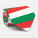 Die Krawatte ist grün, rot und weiß gestrichen.