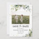 Grünflächen Save the Date mit Fotokarte. Diese stilvolle und elegante Save the Date-Einladung besticht durch die herrliche, handbemalte Aquarell-Vegetation. Finden Sie passende Artikel in der Eukalyptus Floral Greenery_HB1 Kollektion.