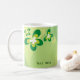 Diese hübsche Tasse ist für jeden möglichen Schmetterlingsliebhaber perfekt. Sie hat einen grünen Hintergrund mit Losen grünen Schmetterlingen ganz über ihr. Jede Seite hat einen kundenspezifischen Raum für einen Namen oder eine Mitteilung.
