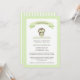 Eine sehr süße, kleine grüne Eule steht in dieser reizenden neutralen Einladung zu einer Babydusche mit "Bring a Book" auf einem Buch. Die passenden Buchzeichen-Labels können auch mit der Einladung an Ihre Gäste, ihre Buchgeschenke zu unterschreiben und anzubringen, versehen werden. Eine wunderbare Art, der Mutter zu helfen, eine großartige Bibliothek von Kinderbüchern für ihr neues kleines Baby zu erstellen.