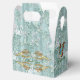 Weiche Pastelltöne von Salbei-Grün/Hellblau-Seidendrape mit hellweißen Spitzen-Flamingos und Blume. Diese Kollektion ist mit einem passenden Gästebuch für Hochzeitsgäste oder Urlauber ausgestattet