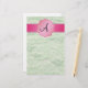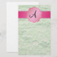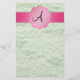 Grünes Spitzemuster, rosa Herzkammuschelkreis und rosa Streifen der Diamanten (wirkliche Diamanten des Imitats nicht) und Monogrammbuchstabe ändern zu jedem möglichem Buchstaben a, b, c, d, e, f, g, h, i, J, k, L, m, n, O, p, q, r, s, t, u, v, w, x, y, z