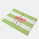 Whimsikale rosa Flamingos über den Kalkgrün und den weißen Streifen bilden einen einladenden Eingang. Ideal für ein Strandhaus oder eine Zuhause.