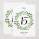 Elegante Grün Hochzeitsfeiern Tischnummern mit Aquarell grünen Blätter Kranz. Ideal für Hochzeiten im Frühling und andere Veranstaltungen zum Thema botanischer Garten.