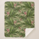 Eine Decke aus grünem tropischem Palm mit einer Vintagen botanischen Aquarellmalerei einer tropischen Palme Cordyline vs. Princes Margaret, die zu einem wiederholbaren Muster mit grünem Leinen in Creme-, Rosa- und Grüntöne-Farben gemacht wurde. Machen Sie dieses Muster größer oder kleiner oder drehen Sie es nach Ihren Vorlieben. Personalisieren Sie es, indem Sie ein Formetikett hinzufügen und in den folgenden Farben beginnen, um dem Muster zu entsprechen: Cream:#e5dfa5 Green:#3d4e18 Pink:#b67469