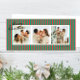 Kleine, grüne und korallenrote Streifen verleihen dieser drei Foto-Urlaubskarte eine moderne und schicke Atmosphäre mit klassischen Schriftart und eine lange, individuelle Nachricht für Freunde und Familie.