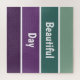Ein grünes und lila, horizontal gestreiftes Muster und der Text: Schöner Tag. Sie können auf Personalisieren klicken und den Text bearbeiten. Schreiben Sie zwei Wörter in einer Zeile.