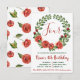 Treffen wir uns zu einer Geburtstagsfeier! Fügen Sie Ihre personalisierten Veranstaltungsdetails der niedlichen, grünen und roten blumengeschmückten Party Einladung hinzu.