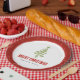 Dieses wunderschöne und minimale Weihnachtsfeiertagsvorratspapier zeichnet sich durch einen grünen Weihnachtsbaum und Sternendesign aus und bietet Platz für Ihren Familiennamen in eleganter und moderner Typografie. Um den Teller herum ist ein passendes rotes Weihnachtsbaumdesign. Die perfekte Ergänzung zu Ihrem traditionellen Weihnachtsgebäck in dieser Wintersaison.