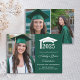 Moderne, grün-weiße Abschluss 3-Foto-Ankündigungskarte für Uni/Hochschulabsolventen. Mit der Anpassung können Sie Ihre Fotos und Texte hinzufügen und/oder die Kartenfarbe ändern. Kontaktieren Sie mich, um Hilfe bei Ihren Anpassungen zu erhalten oder um passende oder koordinierende Produkte anzufordern.