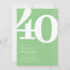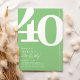 Eine trendige, grüne und weiße Party Einladung zum 40. Geburtstag, die den Charme der alten Welt des fetten Serif-Schriftartes Nummer '40' nahtlos mit einer modernen, benutzerfreundlichen, personalisierbaren Vorlage verbindet. Diese Einladung ist nicht nur eine Karte, sie ist ein bedeutsamer Sake, um den Meilenstein von 40 zu schätzen.