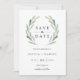Einfache und rustikale Hochzeit Speichern Sie die Date Card Einladung mit Aquarellblütenbild mit grünen Olivenzweigen Kranz. Es ist ideal für Frühjahr-, Sommer- und Strandveranstaltungen. Für eine erweiterte Anpassung dieses Designs, klicken Sie bitte auf den Button "Anpassen" oben! Matching-Elemente sind ebenfalls verfügbar.