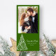 Geben Sie Ihre Dezembernuptien bekannt, wenn Sie die festliche Grünen Weihnachtsbaum-Hochzeit Speichern Sie die Datum Ankündigung Foto-Karte mit Ihrem persönlichen Foto, Namen und Ehezeremonie Datum. Ändern Sie ggf. die Hintergrundfarbe und den Schriftart. Diese elegante wintery Heirat Zeremonie und Empfang behielt die Datums-Fotokarte mit einem Wirblen xmas Baum-Design auf einem grünen Hintergrund. Erhältlich als gedruckte Einladung zum Verschicken oder als digitaler Download für den einfachen digitalen Austausch online.