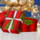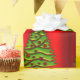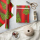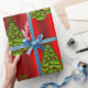 Eine hübsche und farbenfrohe Weihnachtsverpackung mit grünen Weihnachtsbäumen auf einem lebendigen, metallisch roten Hintergrund, um Ihrem Geschenk in dieser Urlaubssaison einen Glanz Farbe und festlichen Stil hinzuzufügen.