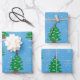 Feiern Sie die Urlaubssaison mit diesem festlich grünen Weihnachtsbaumpapier mit leicht fallendem Schnee und winzigen weißen Schneeflocken auf einem fröhlichen blauen Hintergrund. Ideal für Geschenkpackungen, Ferienkunst oder eine Touch Winterzauber zu Ihren Geschenken.