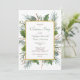 Laden Sie Ihre Freunde zu einer Weihnachtsfeier mit dieser Einladung mit einer grünen und goldenen heiligen Grenze ein.